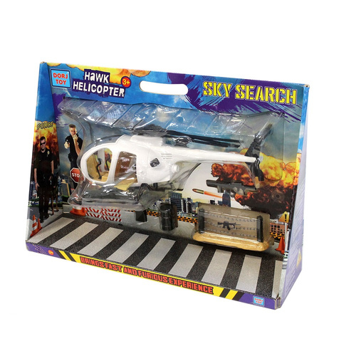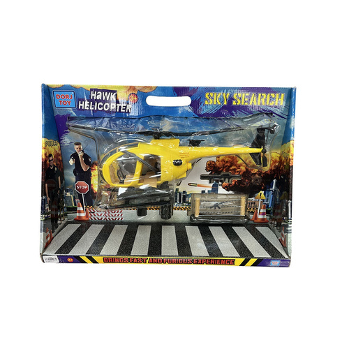 مشابه نمونه واقعی تولید شده از پلاستیک مرغوبی در تولید این هلی کوپتر اسباب بازی استفاده شده و فاقد لبه های تیز و برنده می باشد به همراه این هلی کوپتر دیسکاوری درج دو عدد تفنگ و دو عدد بشکه کوچک و یک عدد سیم خاردار نیز درون بسته می باشد.