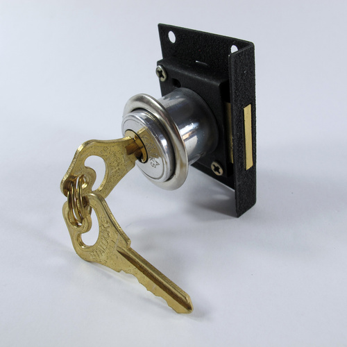این محصول قفل کمد یک پله بوده که مغزی قفل از جنس برنج و زبانه قفل از جنس آهن می باشد. بدنه قفل از جنس آلومینیوم پولیش شده می باشد. سیلندر قفل ها از جنس برنج پولیش شده است. هر قفل حاوی دو کلید از جنس آهن با روکش از جنس برنج است.