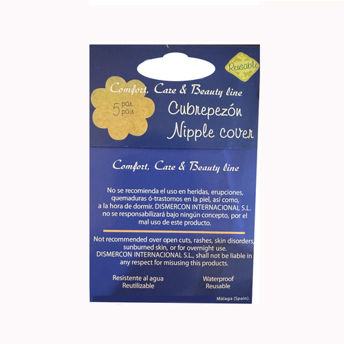 نیپل. به طور معمول با چسب چسبانده می شوند.اگر بستن سوتین شما را ناراحت می کند و یا دچار درد در قسمت گردن می شوید میتوانید برای پوشاندن از کاور های ساده چسبی استفاده کنید . همچنین نیپل سینه مناسب برای استفاده در زیر لباس های جذب و فاقد سوتین و یا سوتین های شیشه ای است . جنس محصول منسوج نبافته بسیاز نازک بوده و سازگار با پوست بدن میباشد.