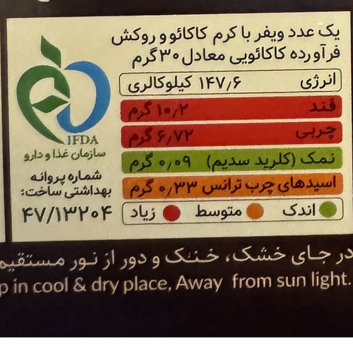 ویفر شکلاتی نادری با روکش شکلات - 30 گرم بسته 20 عددی